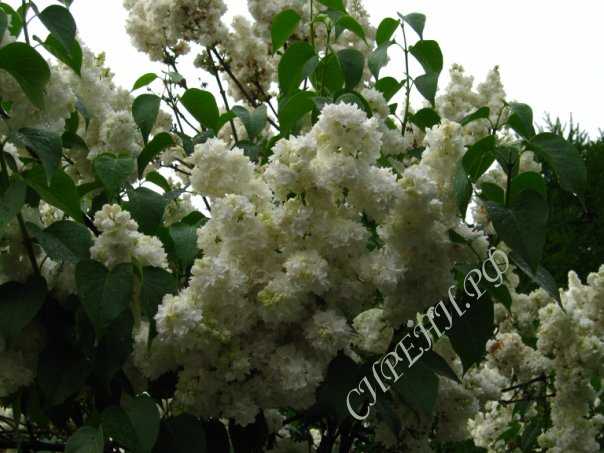 • М-м Абель Шатене (Mme Abel Chatenay) Syringa vulgaris Выведен: 1892 Lemoine Цветовая группа: I (Белые) Форма цветков: Double Бутоны зеленовато-кремовые. Цветки белые, среднего размера, диаметром 2 см,