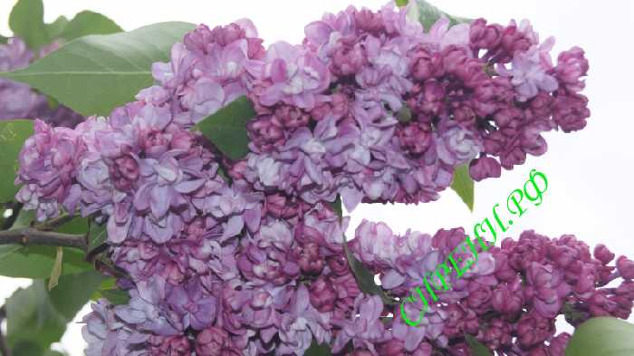 • Изобилие (Isobilie) syringa vulgaris Цветовая группа: V (Розоватые) Форма цветков: Double Бутоны шаровидные пурпурно-лиловые,Цветки махровые -3 венчика,диаметром 2,6см.