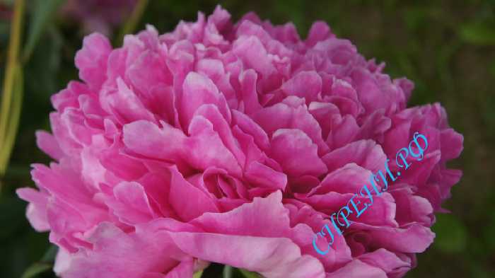 • Сорт на определении (Пион) Заказать Фото: 1 2 Насыщенного розового цвета.Диаметр цветка 17 см. |