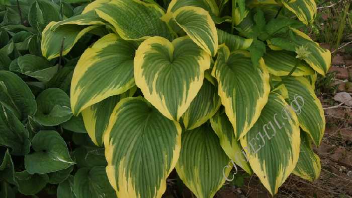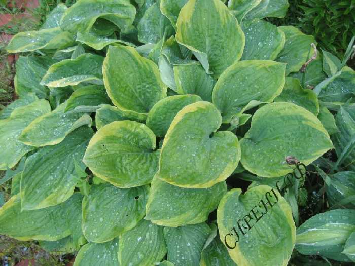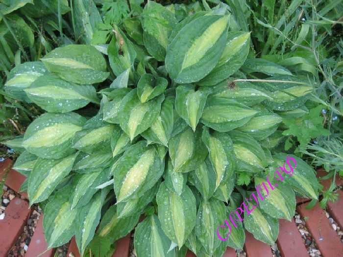 • Сорт на определении (Хоста) Заказать Высота 75-80 см. Листья светло-зеленые с желтой каймой,крупные. Мощное растение. |